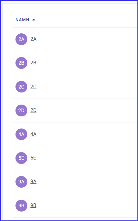 6 – Scrolla ned, en bit på skärmen, till man noterar eleverna i klassen och/eller kurs-/ämnesgruppen
