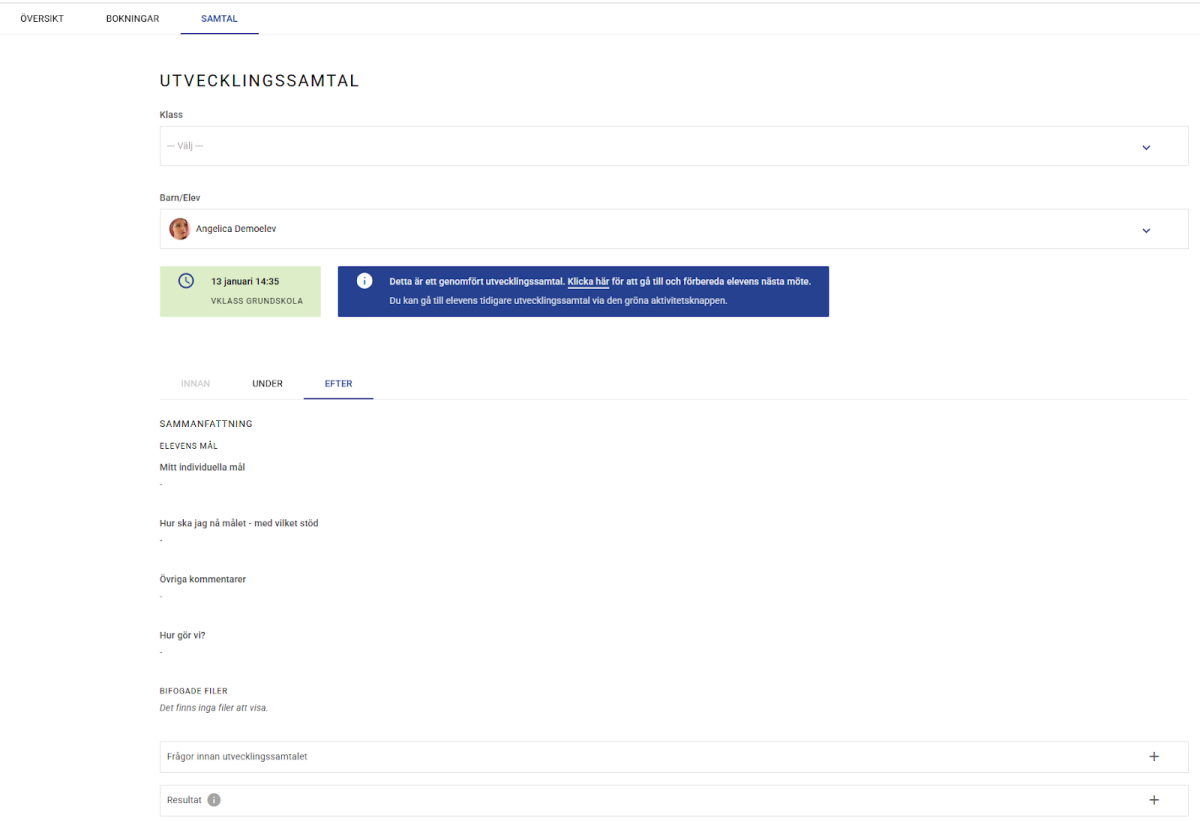 När samtalet är genomfört och dokumentationen publiceras under fliken Efter, genereras en komplett bild av elevens situation.